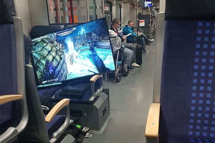 In this fast-paced, technologically driven era, it’s evident that both the young and the old have found solace, and sometimes, an obsession, in the realm of video games. This passion sometimes knows no bounds, as illustrated by this individual who, astonishingly, managed to set up his TV and game console right within the confines of a moving train. The immediate question that pops to mind is, how on earth did he power up the whole setup?